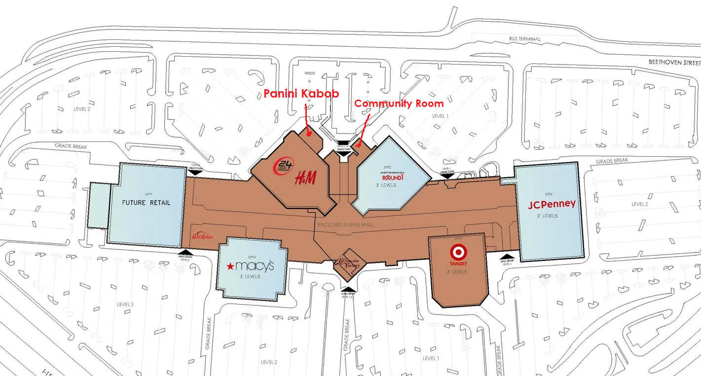 The Community Room is located to the left of Panini Kabob, off Beethoven Street. It is recommended that members park in front of Panini Kabob and use the outside stairs to access the Community Room.
